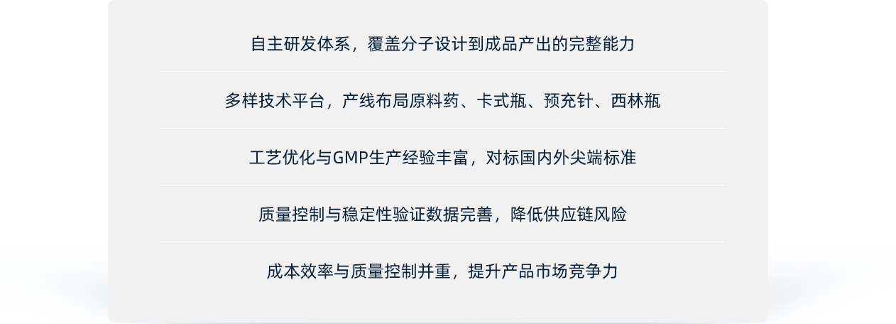 以国际、国内GMP体系执行能力,确保产品的稳定性与合规性。